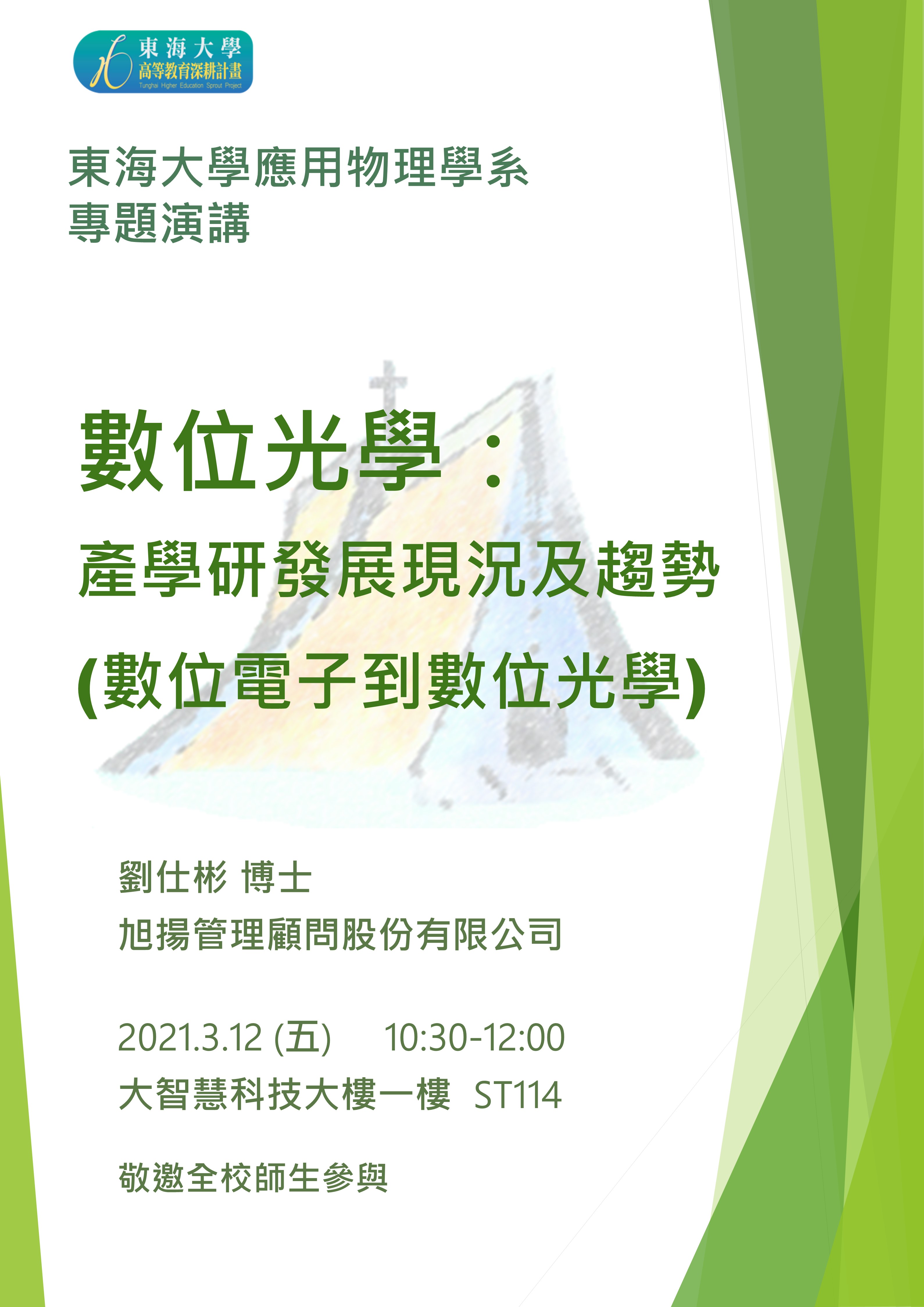 03/12 專題演講 : 旭揚管理顧問股份有限公司 劉仕彬博士 [數位光學: 產學研發展現況及趨勢 ]