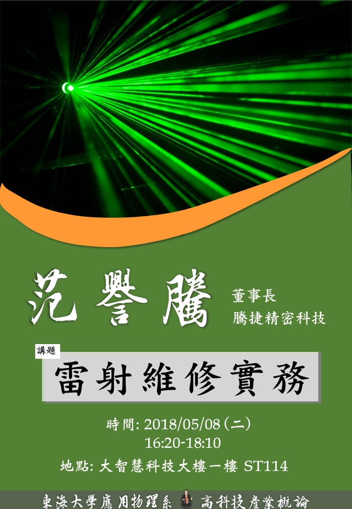 高科技產業概論講座: 騰捷精密科技 范譽騰董事長[雷射維修實務]