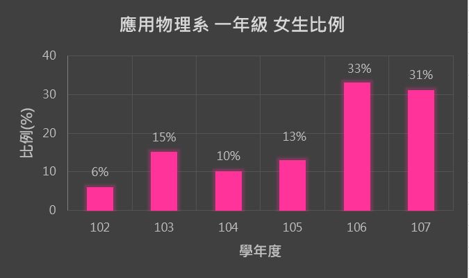 第一, 本系每年招收到的女生人數節節攀升,女生比例已經連續兩年,穩定突破三成!