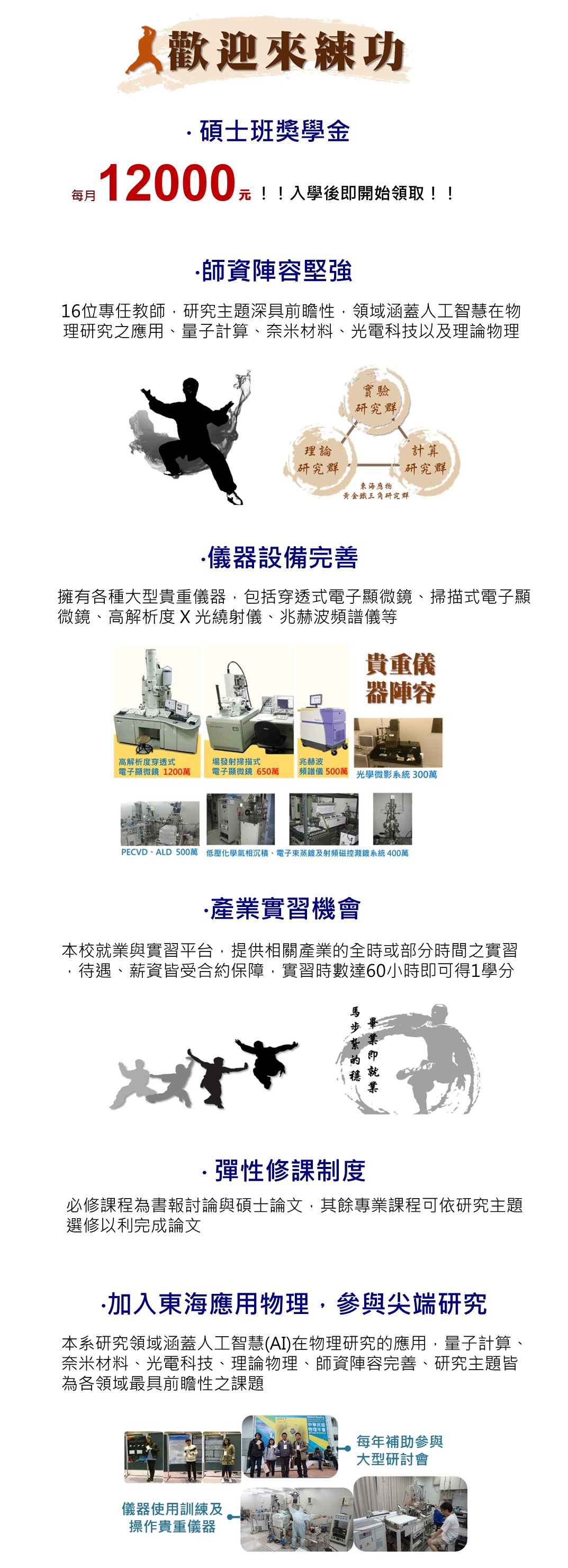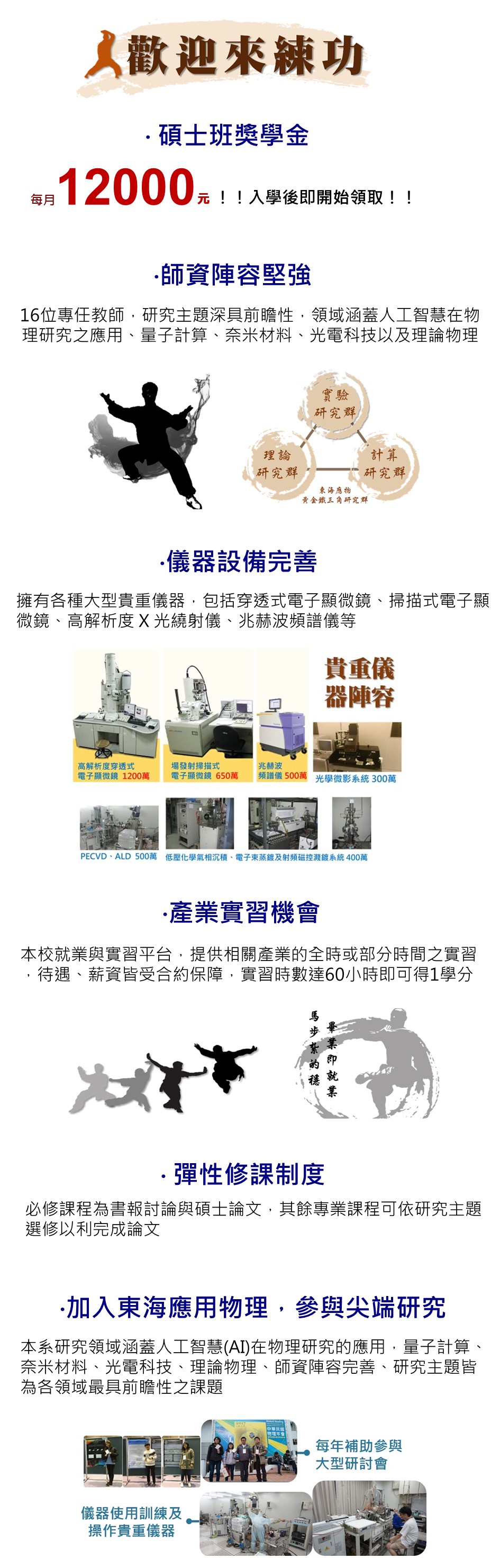 歡迎進入東海應用物理,選擇你有興趣的領域,加入尖端研究的行列!