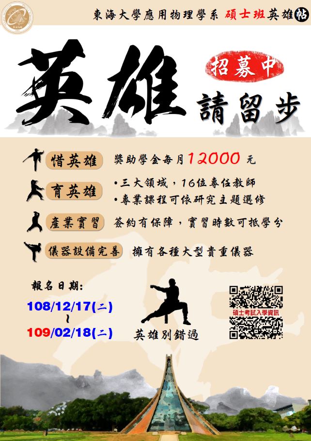 [英雄請留步] 109學年度 碩士班考試入學 招生中!