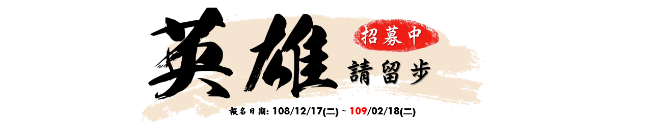 報名時間: 2019/12/17(二) ~2020/02/18(二)