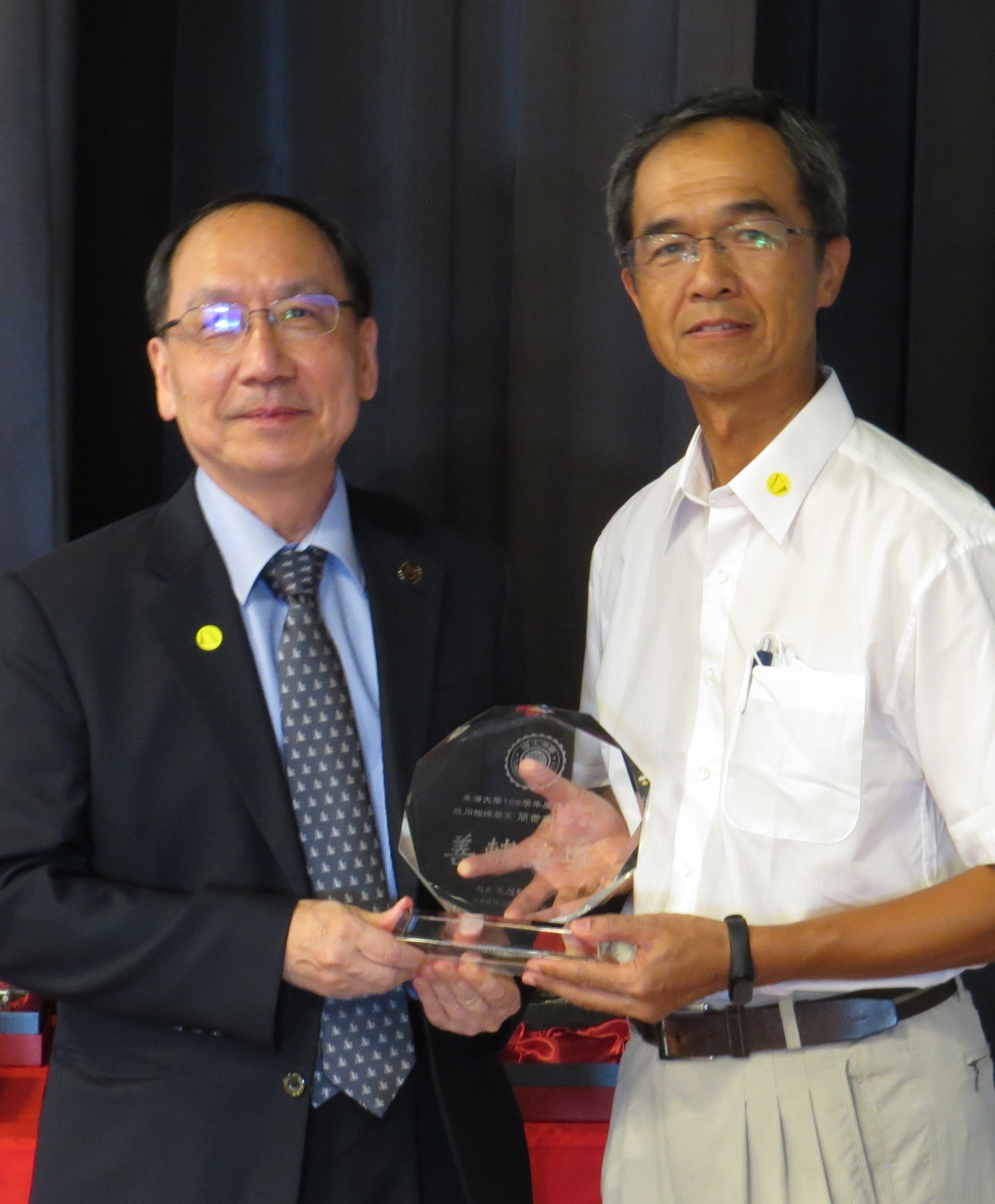 簡世森老師從王茂駿校長手中接下優良導師獎牌