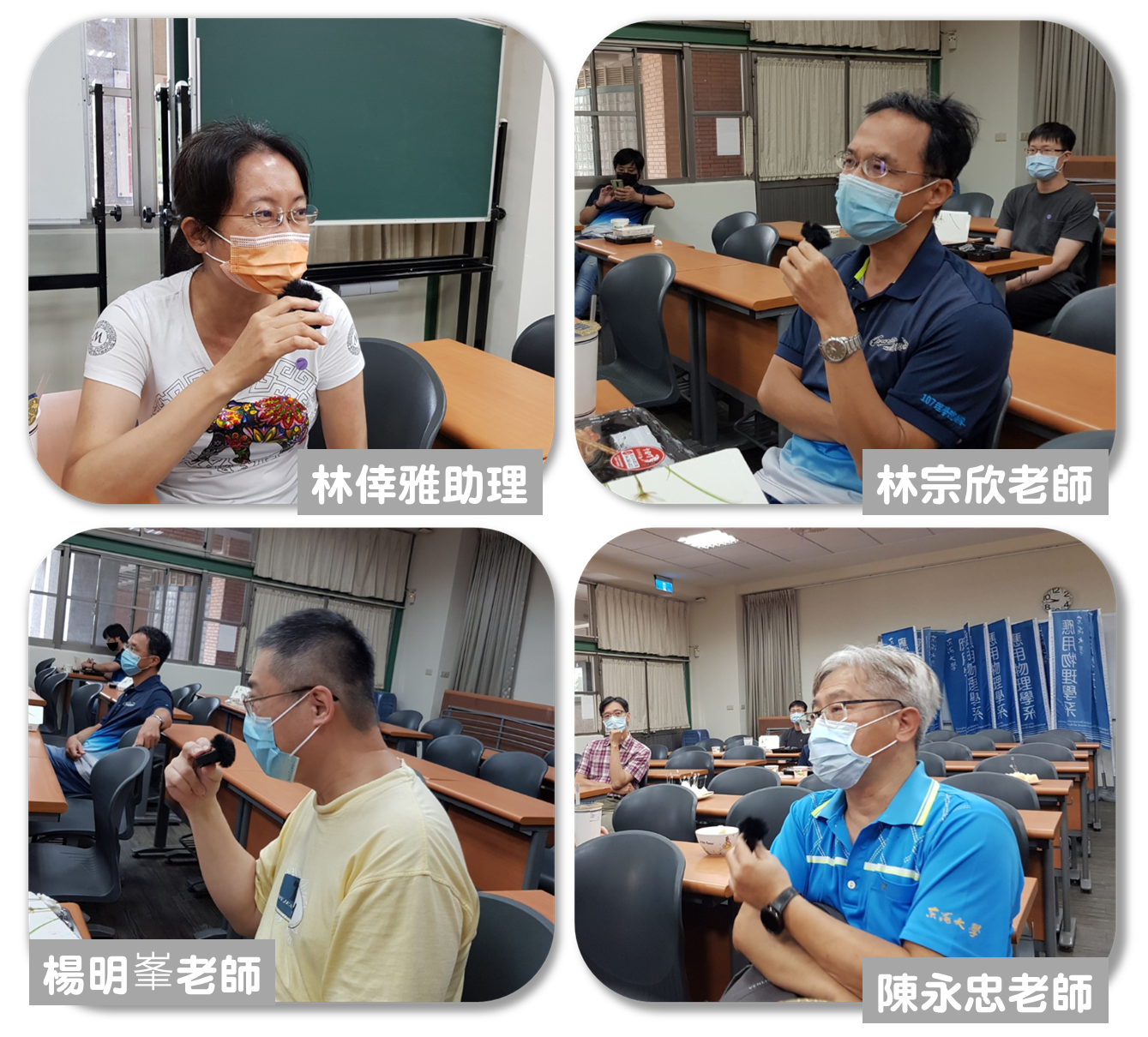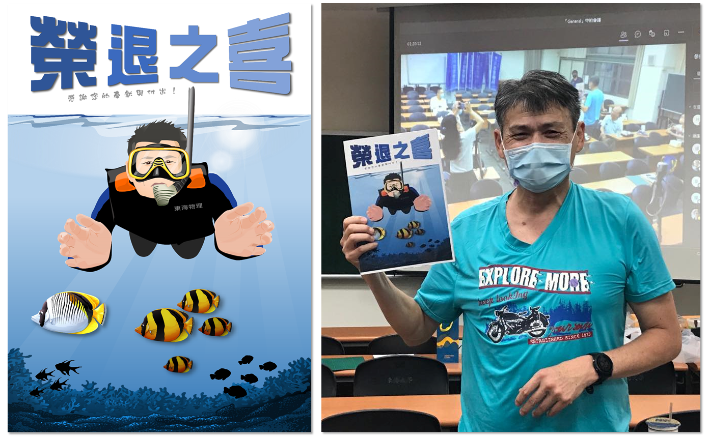 特別於 7/29 在符合防疫規定下舉辦小型的溫馨歡送會,系辦同仁和老師都各別發表感言,過程歡樂且充滿回憶,楊老師也特別退休感言,每一句的回憶都帶領著大家走過一遍應物系的來時路,春去秋來,有甜有苦,系辦同仁特別繪製卡片是老師喜愛的潛水活動送給老師,祝福老師退休愉快~