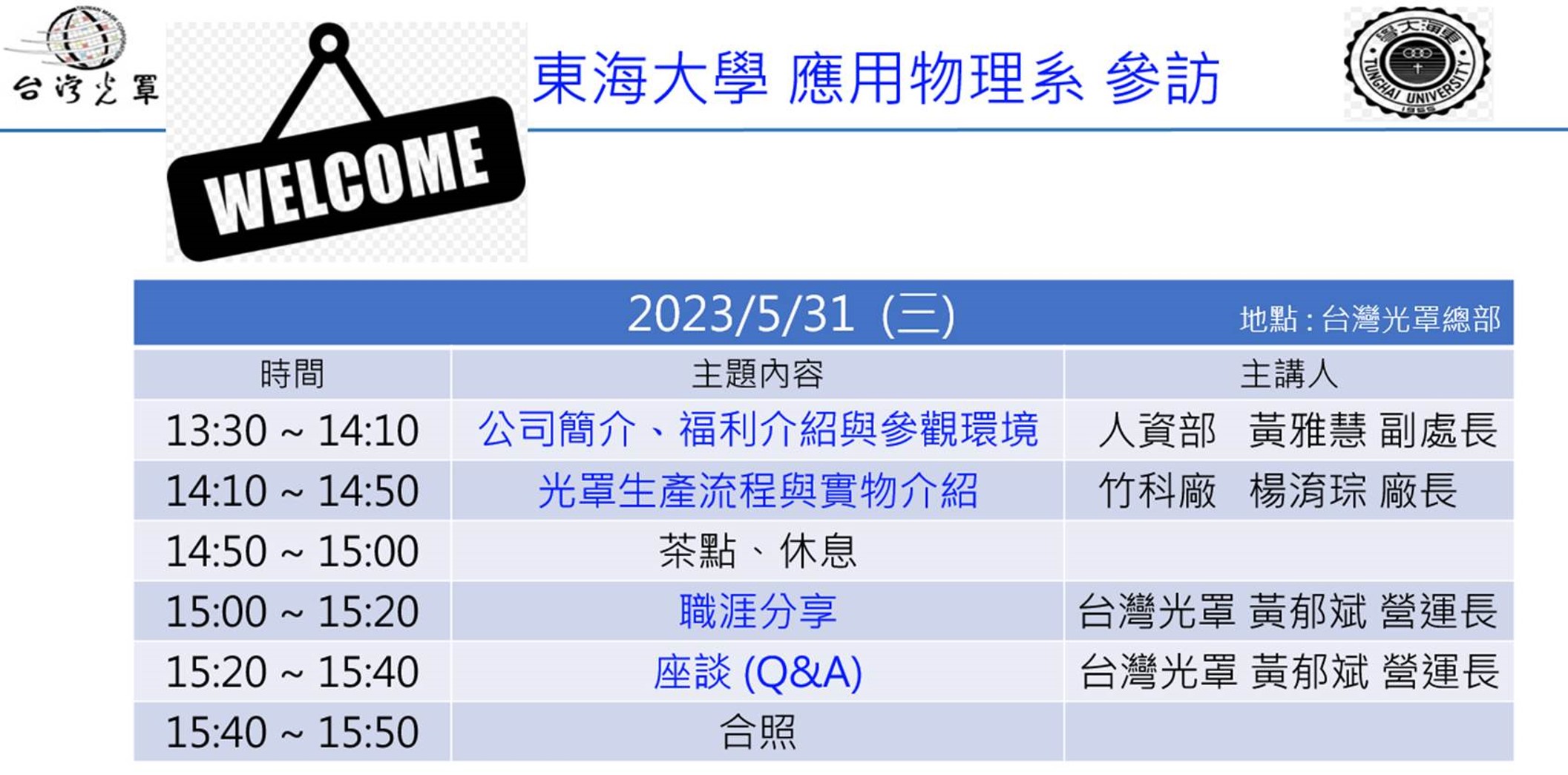 參訪地點:台灣光罩(股)有限公司(總部,位於竹南科學園區)