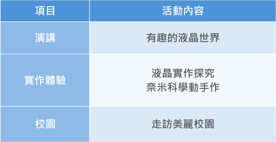 「液晶與奈米科學體驗營」正式開跑!引導學員深入微觀世界,親身體驗液晶分子的排列之美,並見證奈米技術如何革新現代科技。這不僅是知識的傳遞,更能啟發對未來材料科學的想像。無論你是對顯示技術感興趣,還是渴望探索前沿科技,這場盛會都將開拓你的科學視野。在微米與奈米之間,共同描繪未來科技藍圖!