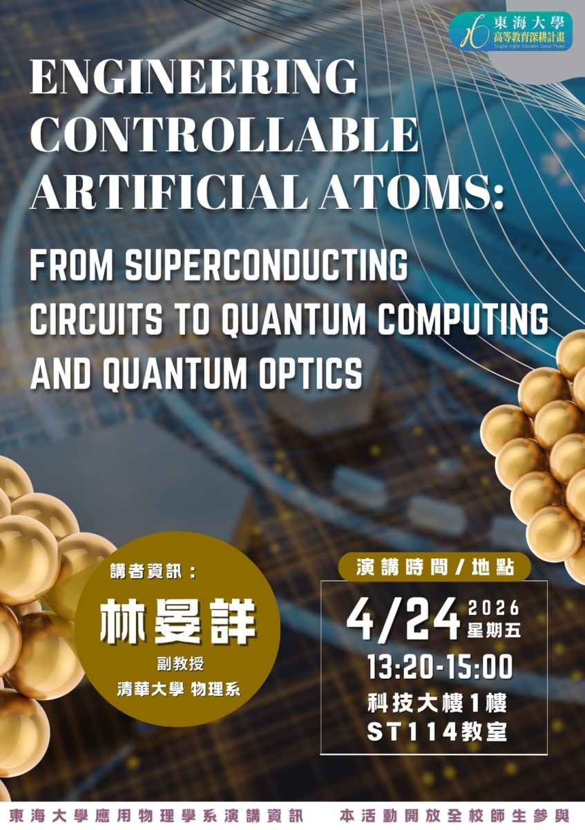在本演講聚焦於可控人工原子的工程實現,從超導電路出發,介紹如何設計與操控量子位元,並探討其在量子計算與量子光學中的應用。透過微波技術與低溫環境,研究者得以精準調控量子態,實現高相干性與可擴展的量子系統。同時,也將說明人工原子與光場交互作用的物理機制,展示其在量子資訊處理、量子模擬及新穎光學效應中的潛力,勾勒未來量子科技發展的關鍵方向。