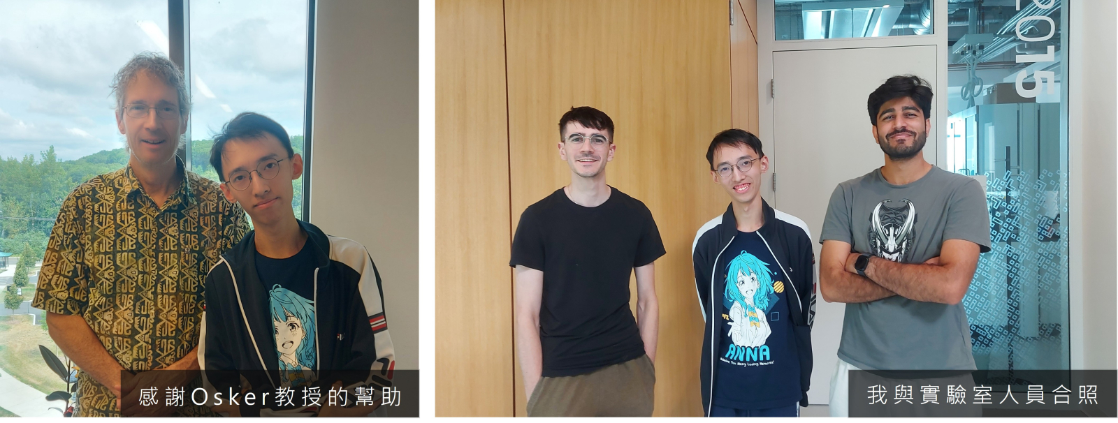 我也非常感謝聶教授。能在異鄉遇見一位台灣教授,就像在沙漠裡看見綠洲,給人安心的感覺。聶教授在住宿、交通、校務上都給了我們極大幫助,更難得的是能和他面對面交流,聽他分享寶貴的經驗,甚至參與到他的實驗室研究中,這對我來說都是極具啟發的體驗。